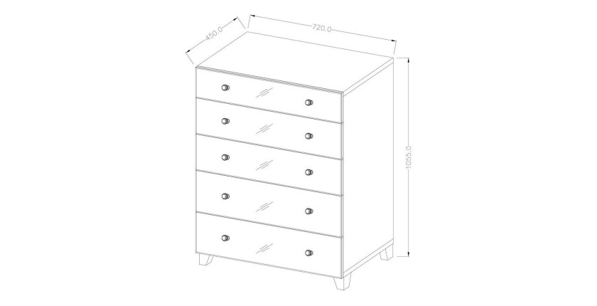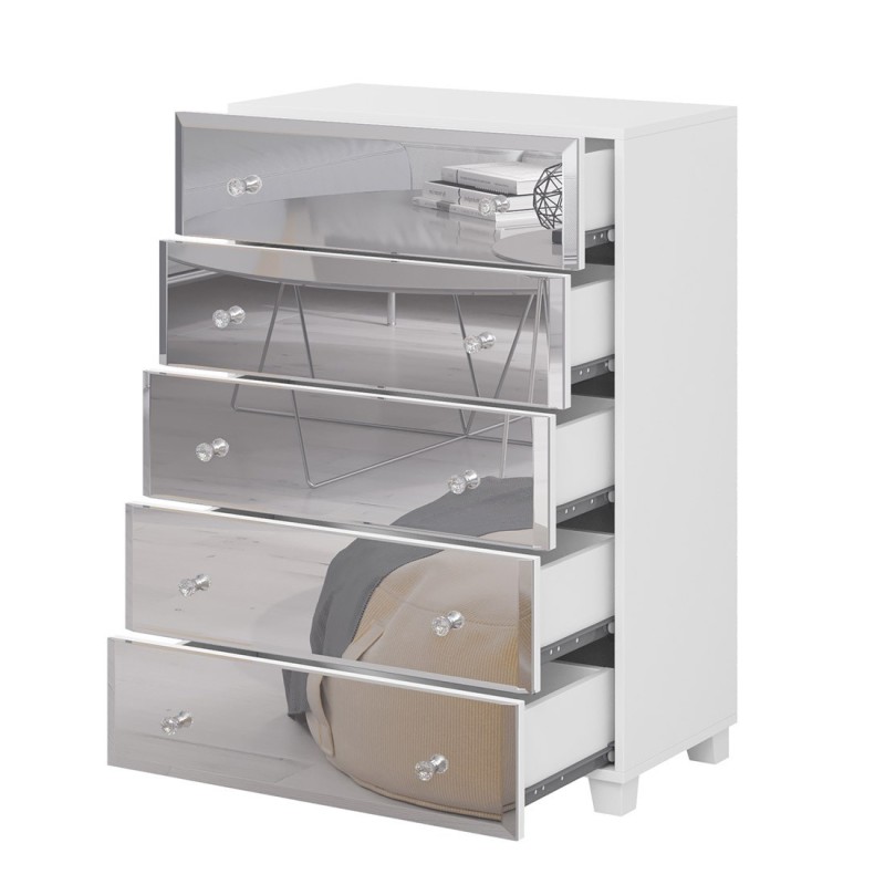 Commode collection LIVORA composée cinq tiroirs, elle vous charmera grâce à ses miroirs tendances et ses finitions soignées.