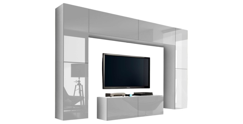 - CARACTÉRISTIQUES : Ensemble de 8 meubles pour composition murale TV, collection CEPTO, 8 étagères, 8 portes, leds.
