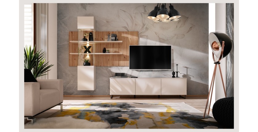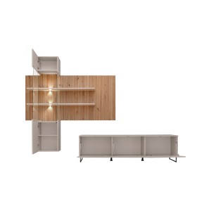 | Contenu du pack | Un panneau mural, une vitrine et un meuble TV |