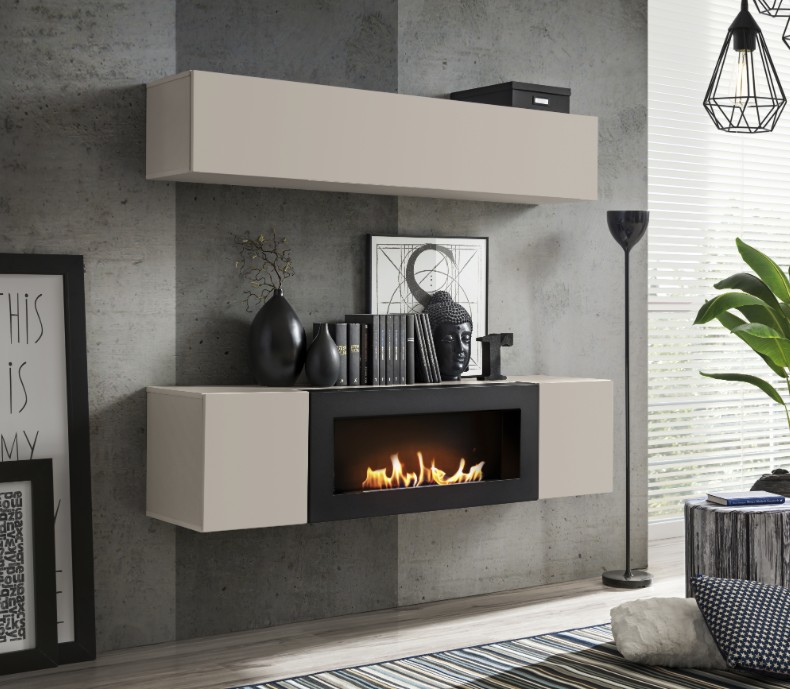 Modernisez votre salon avec la composition murale FLY cachemire, un ensemble élégant et pratique qui associe design scandinave et fonctionnalité. Cette combinaison regroupe une colonne suspendue horizontale et un meuble TV doté d’une cheminée bio-éthanol intégrée.