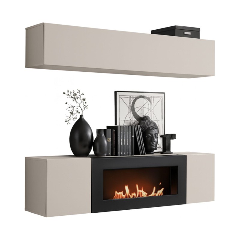 Contenu du pack | 1 colonne suspendue horizontale et 1 meuble TV avec cheminée intégrée |