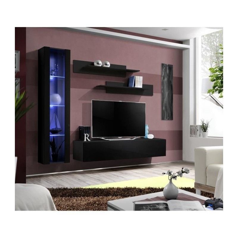 La composition murale FLY G2 est idéale pour créer un salon moderne et structuré. Son design suspendu libère l’espace au sol et facilite le nettoyage. La colonne vitrée avec éclairage LED met en valeur vos objets décoratifs, tandis que le banc TV et les étagères offrent des espaces pratiques pour vos équipements multimédia. Son coloris noir brillant apporte une touche chic et contemporaine à votre intérieur.