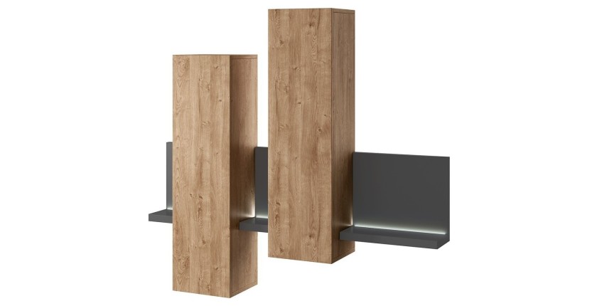 Grâce à cette composition murale de la collection BERGAME, coloris chêne et gris anthracite, offrez à votre salon un style ultra chic, au top des dernières tendances déco.