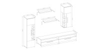 | Contenu du pack | un meuble TV, deux vitrines ( une suspendue ) et deux étagères. |