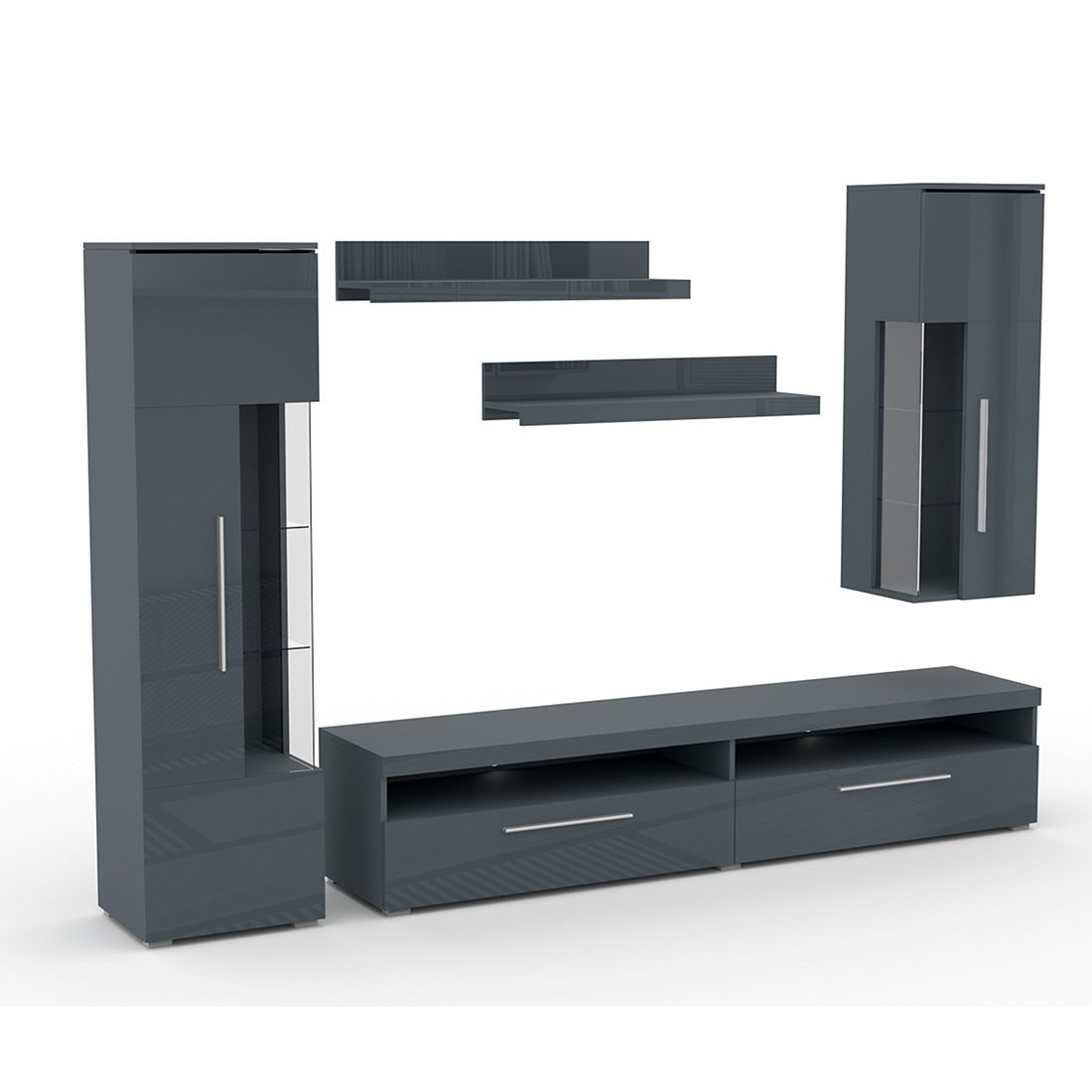 | Contenu du pack | un meuble TV, deux vitrines ( une suspendue ) et deux étagères. |