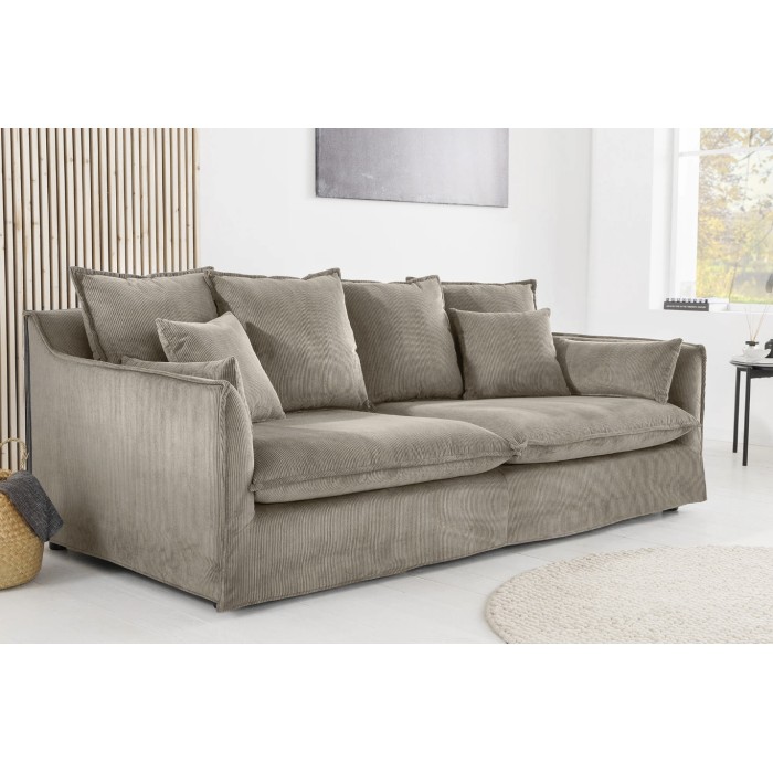 Canapé droit KALIA – Tissu côtelé beige gris – 3 places – Style contemporain