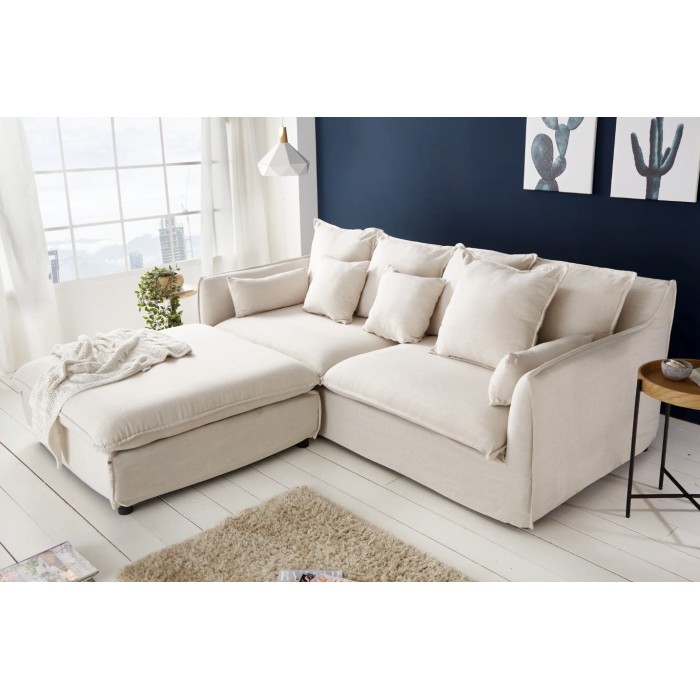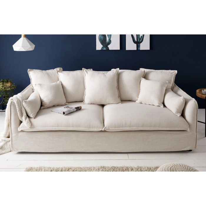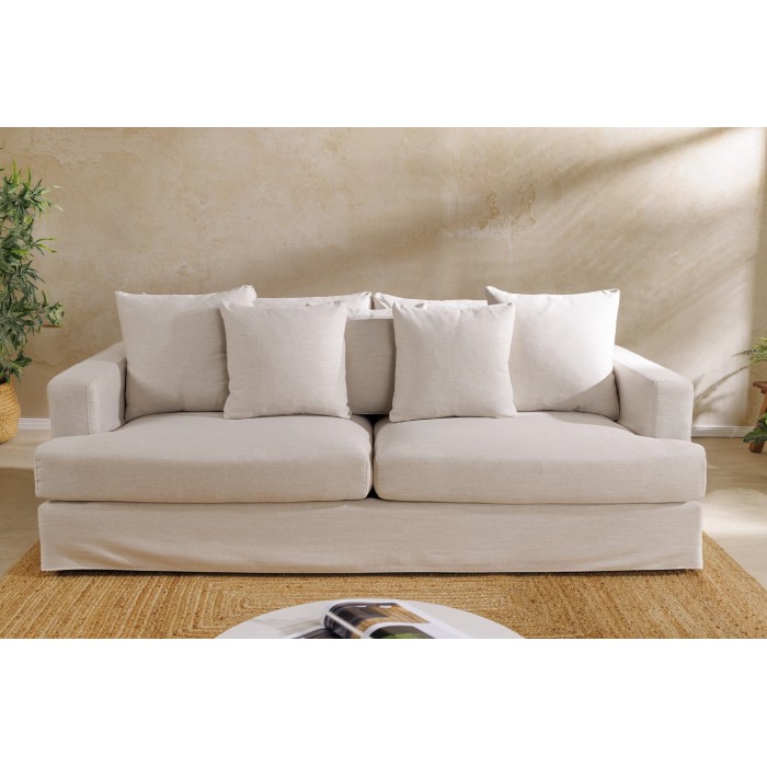 Canapé droit KALIA – Tissu blanc mat – 4 places – Confort généreux contemporain
