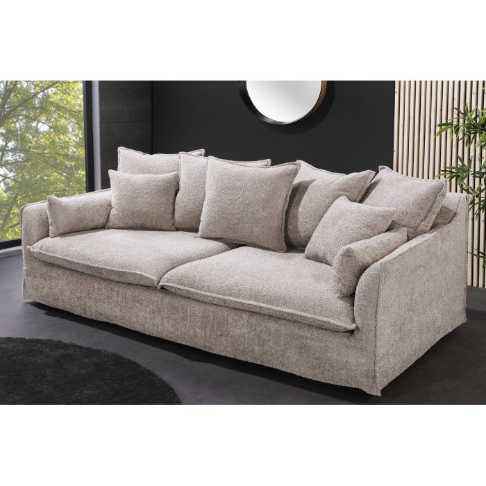 Canapé droit KALIA – Tissu bouclette beige champagne – 3 places – Style contemporain