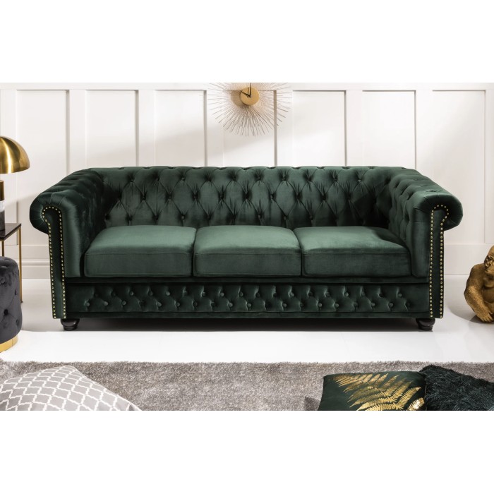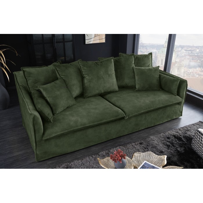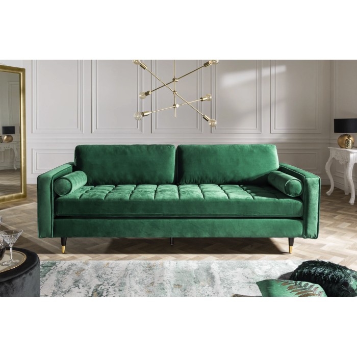 Canapé droit KALIA – Tissu côtelé vert foncé – 3 places – Style contemporain