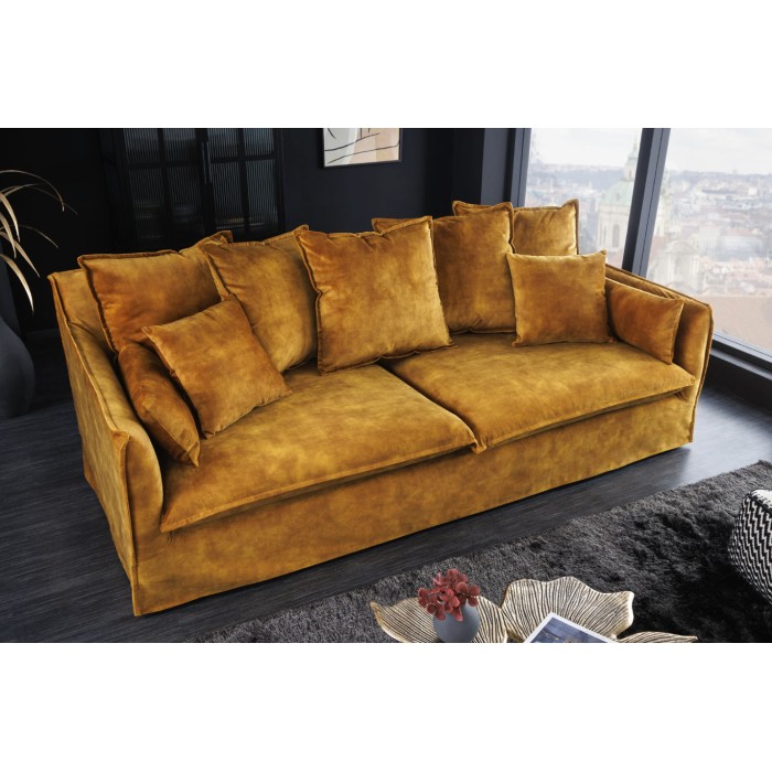 Canapé KALIA droit – Velours jaune moutarde – 3 places – Style contemporain