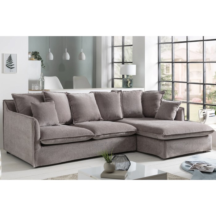 Canapé d’angle KALIA – Velours gris taupe – 4 places – Angle droit contemporain