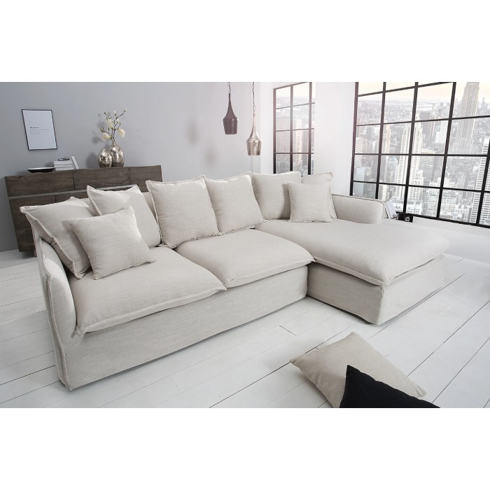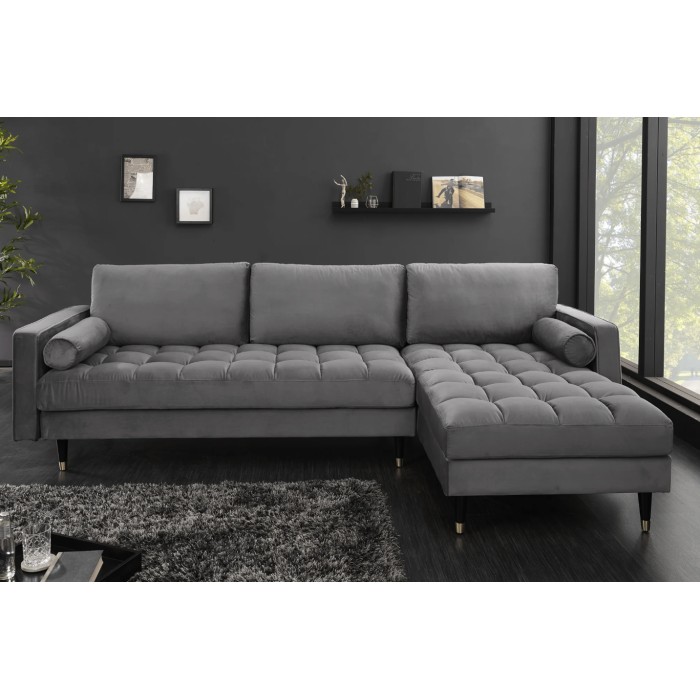 Canapé d’angle KOLIRI gris – 4 places – Angle droit – Canapé design en velours et bois massif