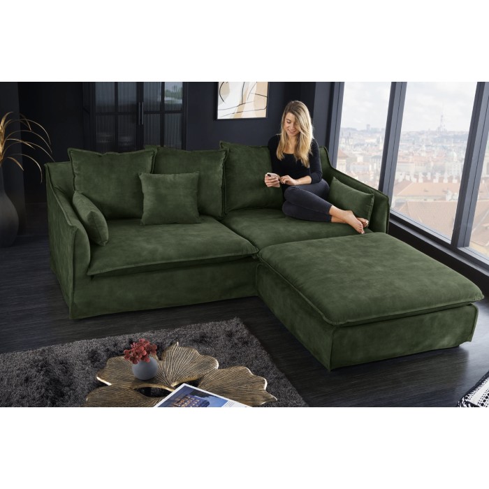 Canapé d’angle KALIA – Vert foncé – 4 places – Angle droit en velours contemporain