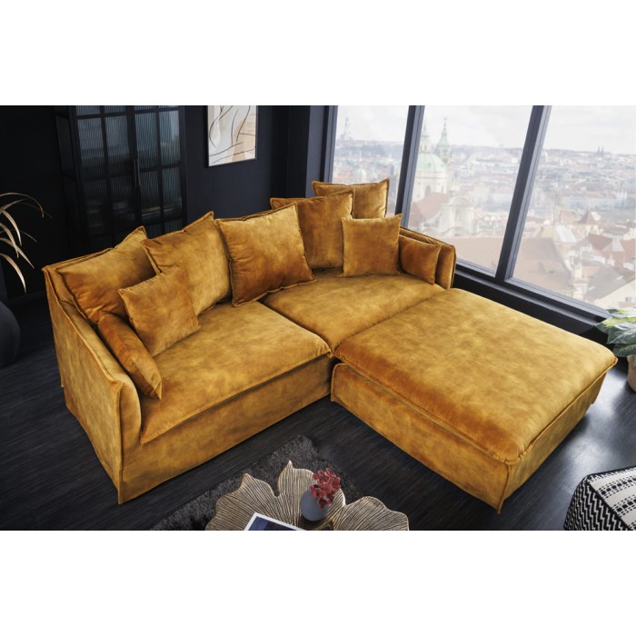 Canapé d’angle KALIA – Jaune moutarde – 4 places – Angle droit en velours contemporain