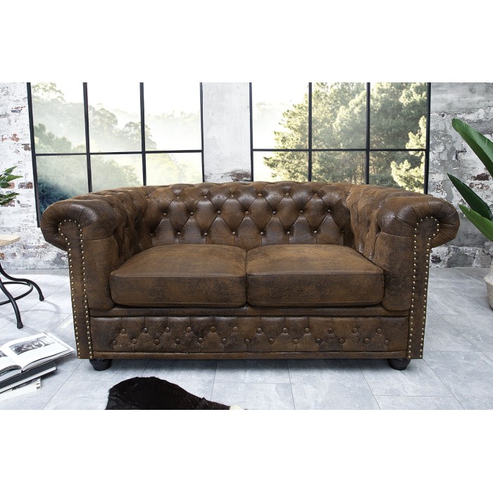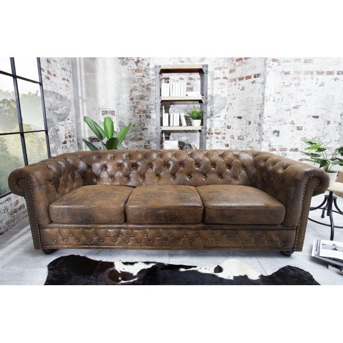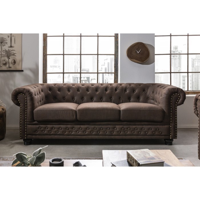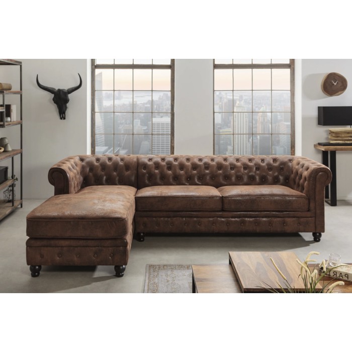 Canapé d’angle EDGAR – Marron chocolat – 4 places – Angle droit style baroque