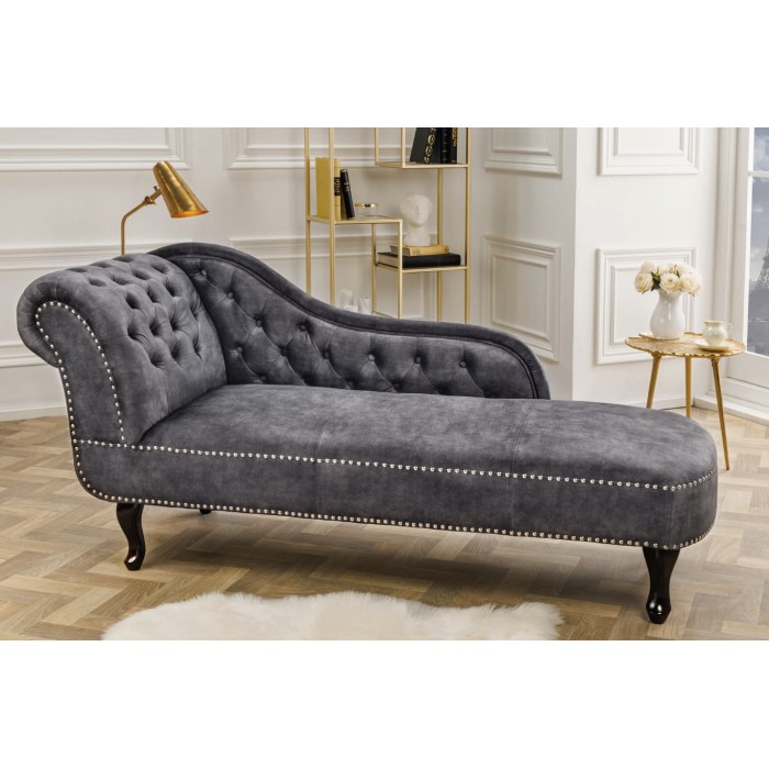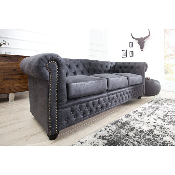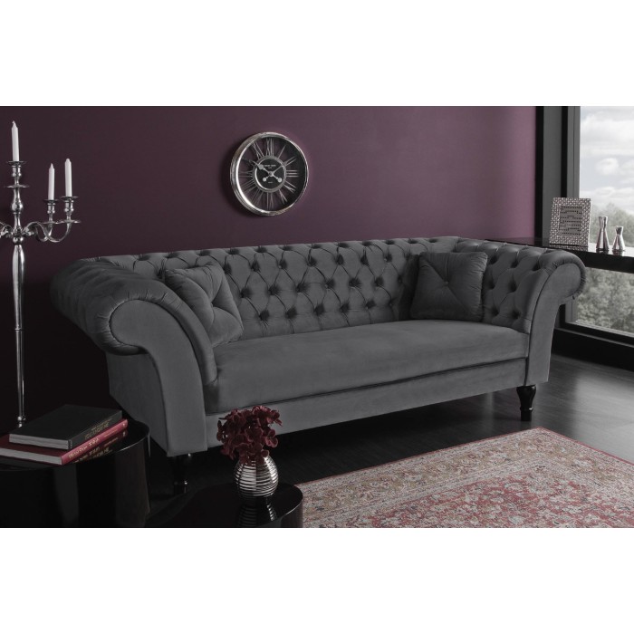 Canapé EDGAR 3 places gris – Style baroque en velours avec structure en bois massif