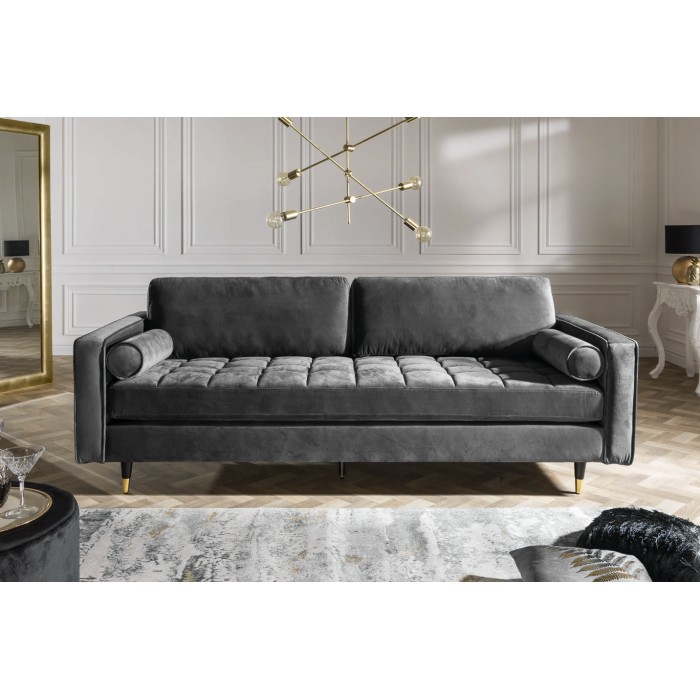Canapé KOLIRI 3 places gris – Canapé design en velours avec structure en bois massif