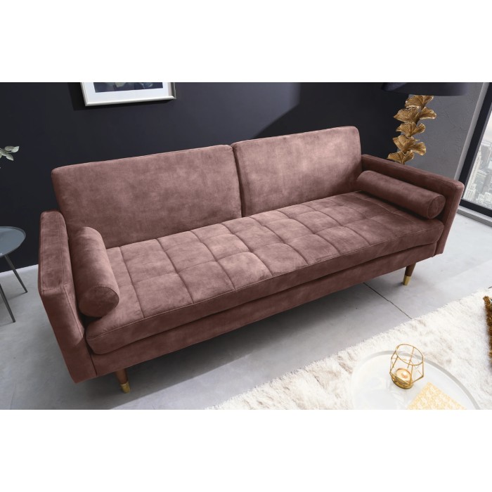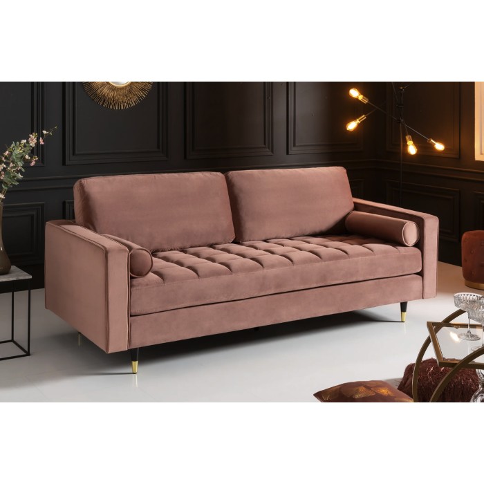 Canapé droit ATLANTIKA rose poudré – Canapé design en velours avec pieds dorés