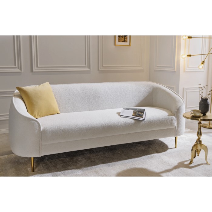 Canapé droit RINI blanc – Canapé chic en tissu bouclette avec pieds en métal