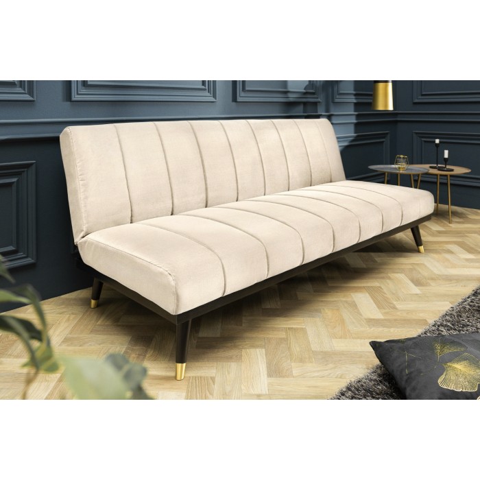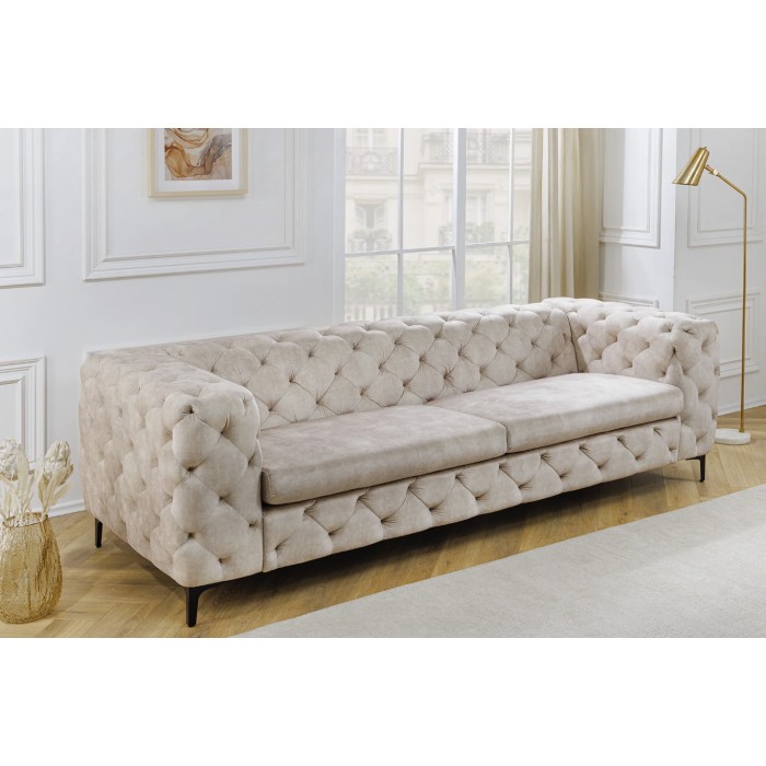Canapé droit VELENA champagne – Canapé baroque en velours avec pieds métal noirs