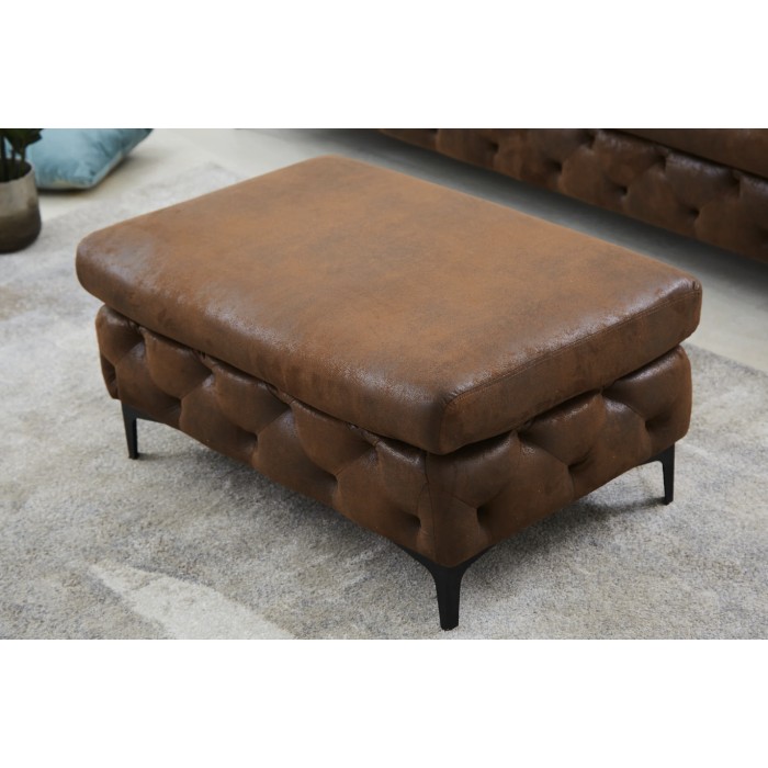 Pouf VELENA marron – Pouf baroque en microfibre avec structure en bois massif