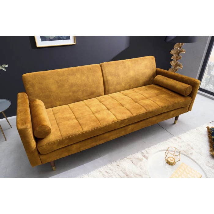 Canapé droit VELENA jaune moutarde – Canapé baroque en velours avec pieds métal noirs