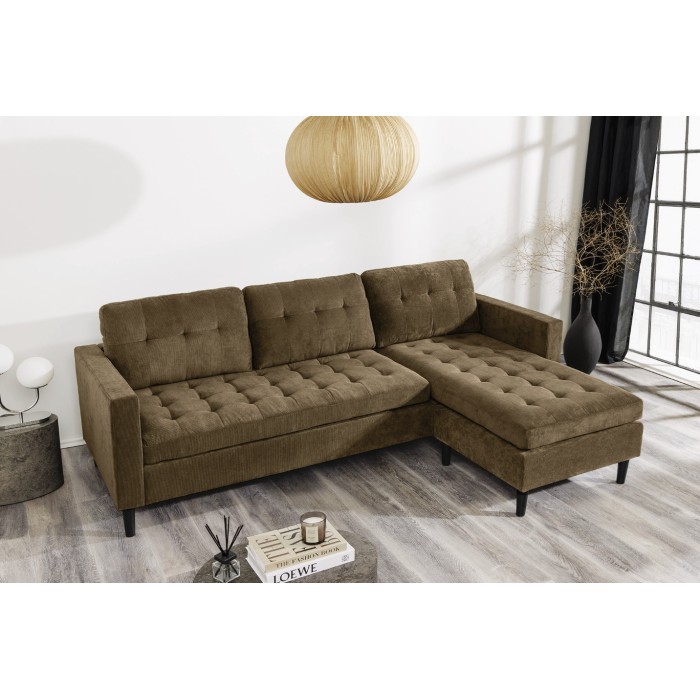 Canapé d’angle CITY brun réversible – Canapé contemporain en velours côtelé
