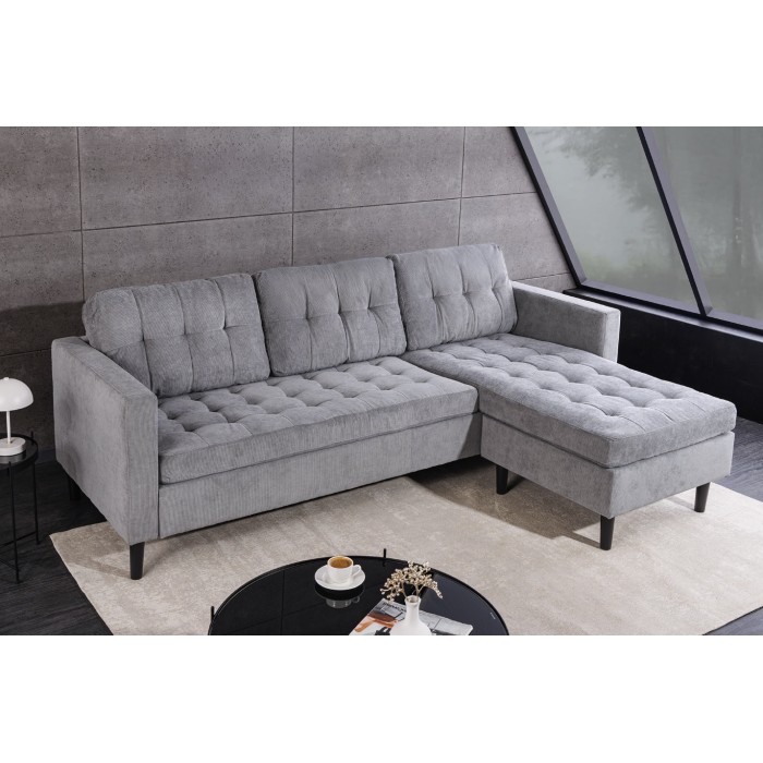 Canapé d’angle CITY gris clair réversible – Canapé contemporain en tissu côtelé
