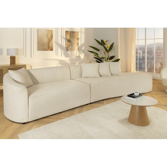 Canapé droit SOREN beige 5 places – Canapé design en tissu bouclette avec forme arrondie