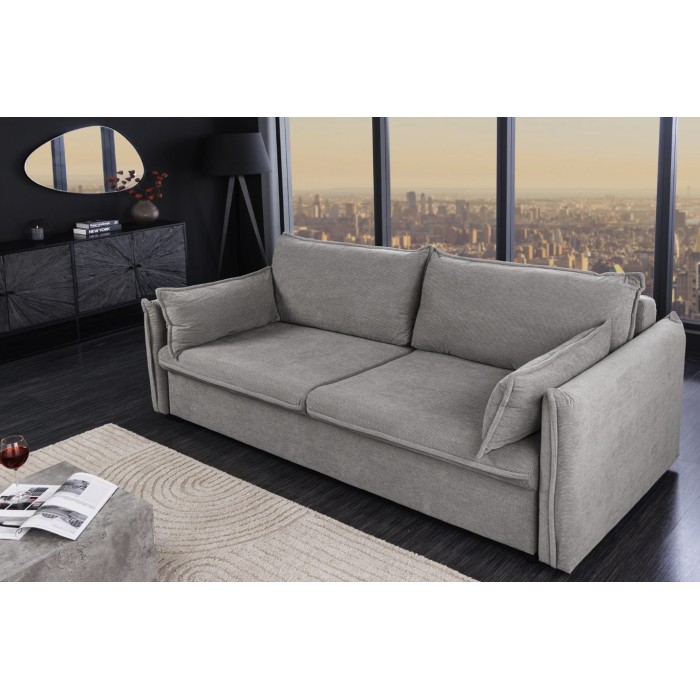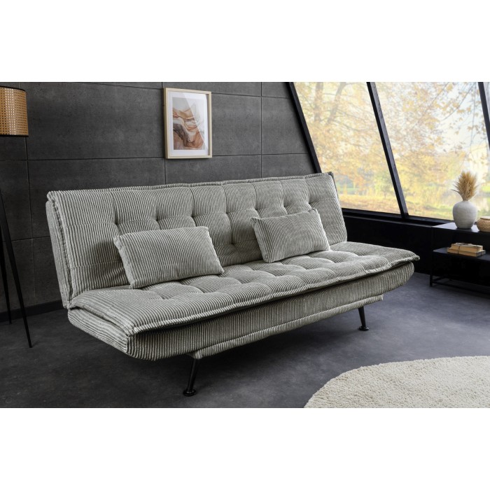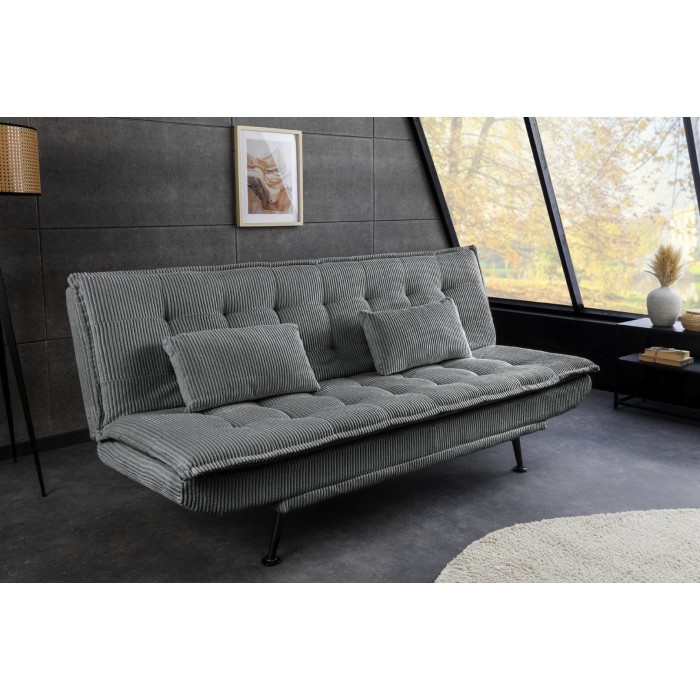 Canapé droit convertible SERENO gris foncé – Canapé-lit 3 places en velours côtelé