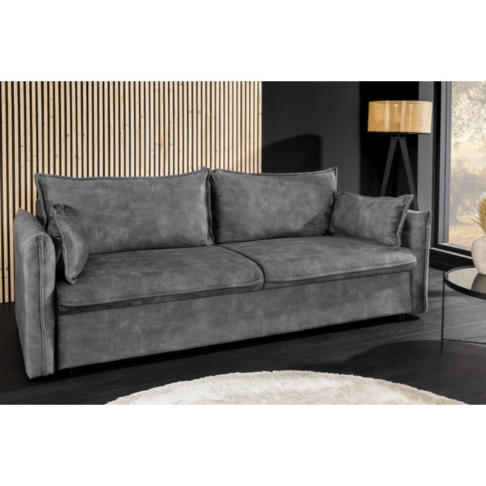 Canapé droit convertible SERENO gris foncé – Canapé-lit 3 places en velours matelassé