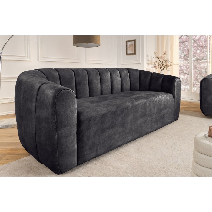 Canapé droit MYSTRO gris anthracite – Canapé design en velours doux avec accoudoirs