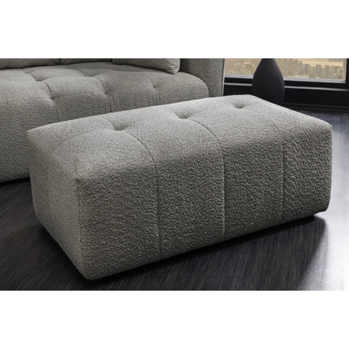 Canapé d’angle KALIA – Tissu bouclette gris – 4 places – Angle droit