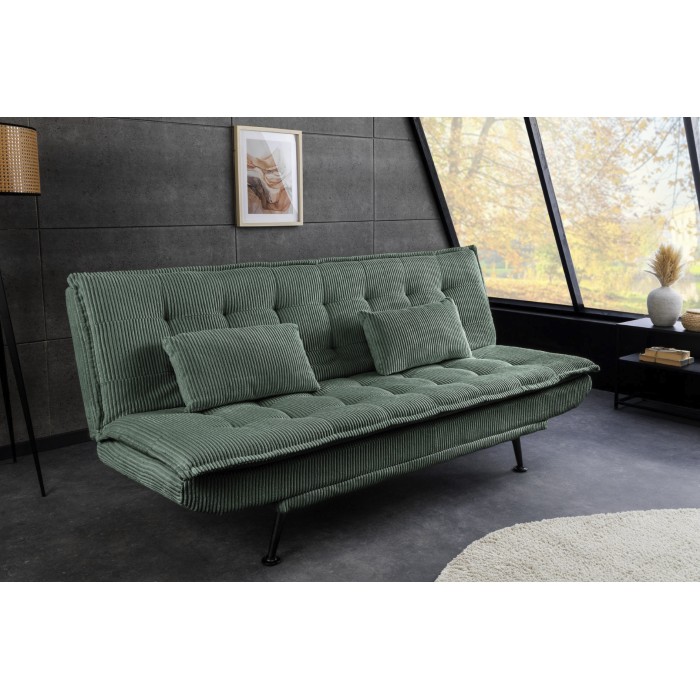 Canapé droit convertible SERENO vert – Canapé-lit 3 places en velours côtelé