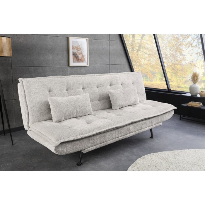 Canapé droit convertible SERENO blanc – Canapé-lit 3 places en tissu chenille