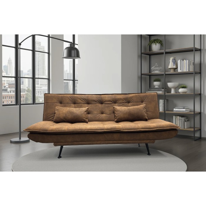 Canapé droit convertible SERENO marron chocolat – Canapé-lit 3 places en microfibre