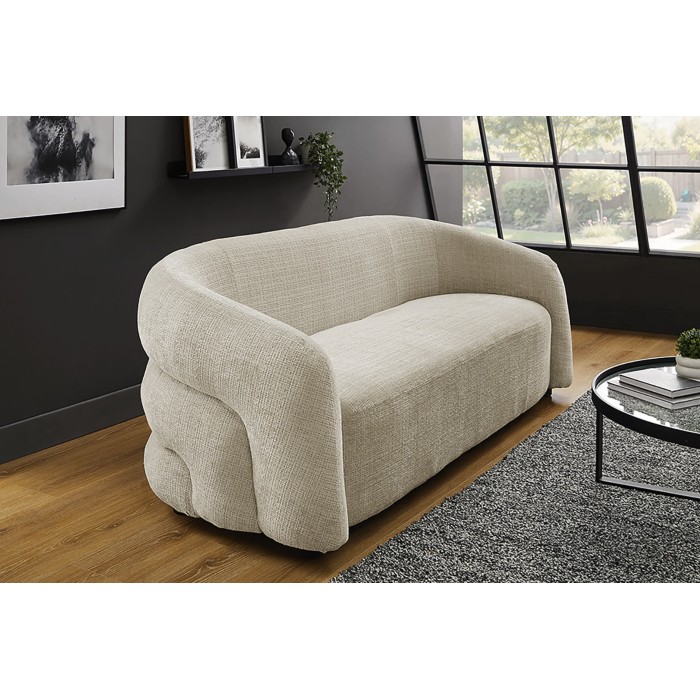 Canapé droit SOREN beige – Canapé design en tissu bouclette avec forme arrondie