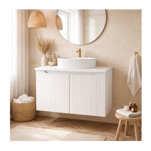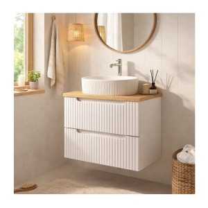 Ensemble de salle de bain VANO 80cm : meuble sous vasque à tiroirs rainuré...