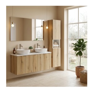 Ensemble VANO aspect chêne 150cm : meubles sous vasque à placards + plan pour...