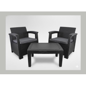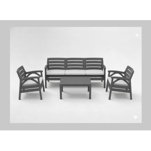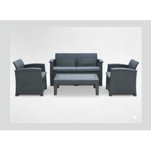 Salon de jardin SAVENNA 4 places anthracite avec canapé, fauteuils et table...