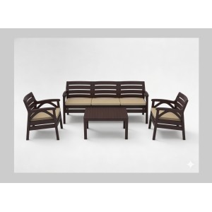 Salon de jardin SAVENNA 4 places marron avec canapé, fauteuils et table basse