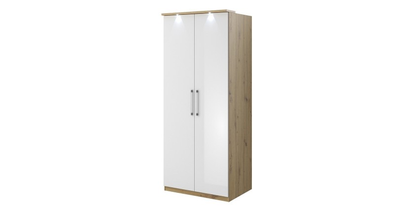 Optimisez votre espace avec le dressing d'angle MODULO, une solution de rangement élégante et fonctionnelle. Son coloris chêne et blanc brillant associé à des éclairages LED intégrés lui confère un design moderne et raffiné. Avec ses nombreux modules et son agencement astucieux, ce dressing s’adapte parfaitement à vos besoins.