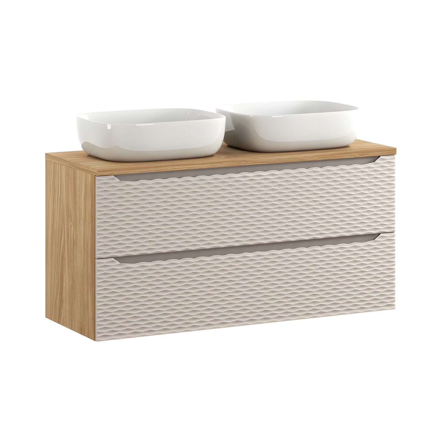 | Dimensions des éléments (en cm) | Meuble sous vasque : 120x57x46 - plan vasque : 120x2,5x46 - 2 vasques à poser : 50x15x40 |