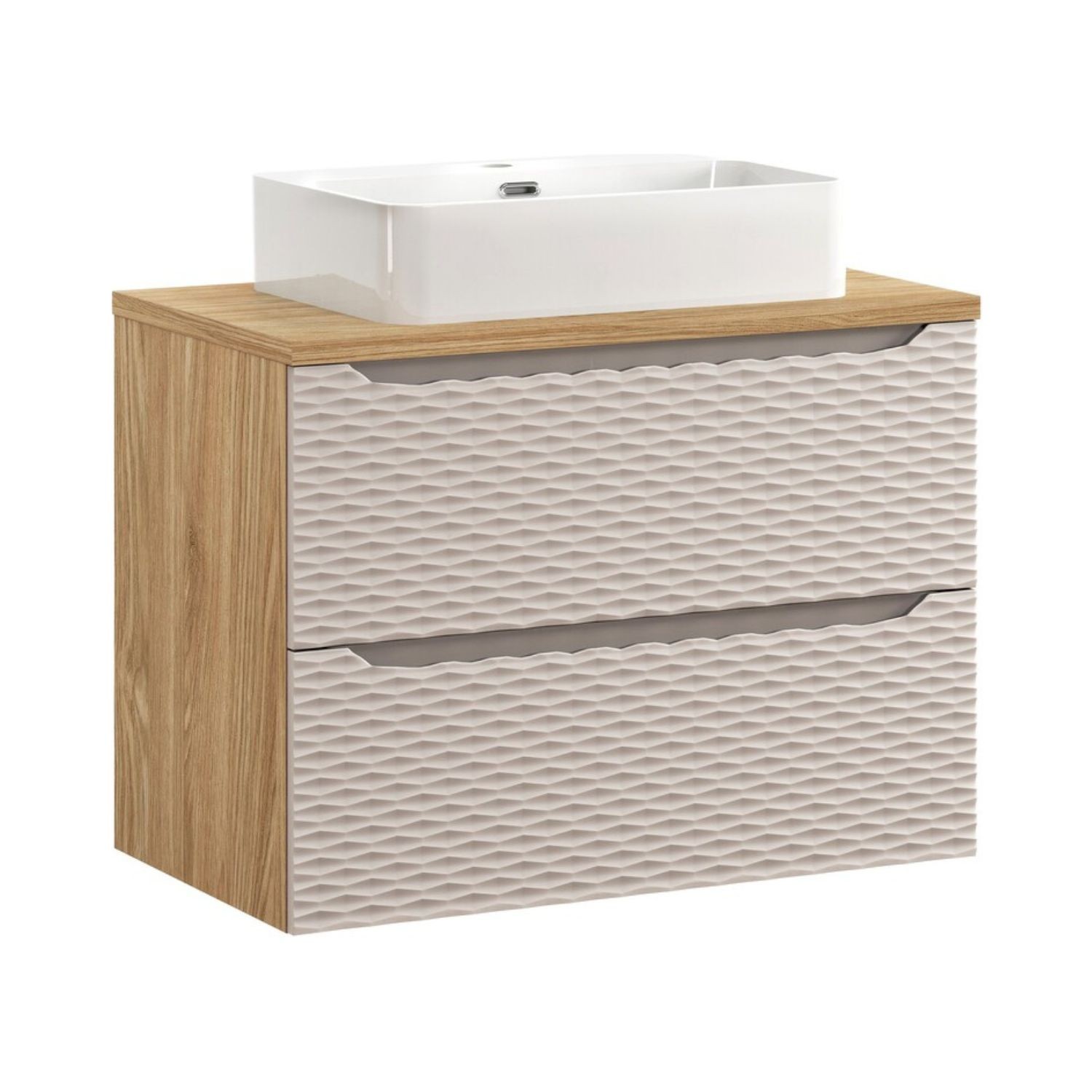 | Dimensions des éléments (en cm) | Meuble sous vasque : 80x57x46 - plan vasque : 80x2,5x46 - vasque à poser : 55x12x38 |