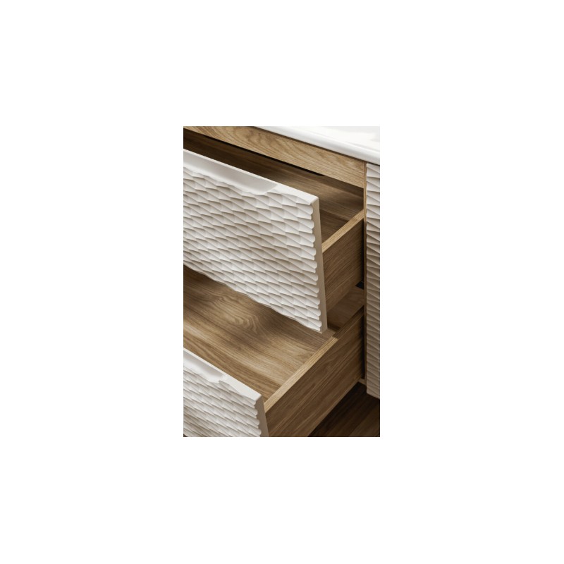 Conçu en MDF et panneaux de particules de haute qualité, cet ensemble est à la fois robuste et résistant à l’humidité. Le plan pour vasque assorti complète le tout pour un rendu harmonieux et une installation suspendue légère et élégante.