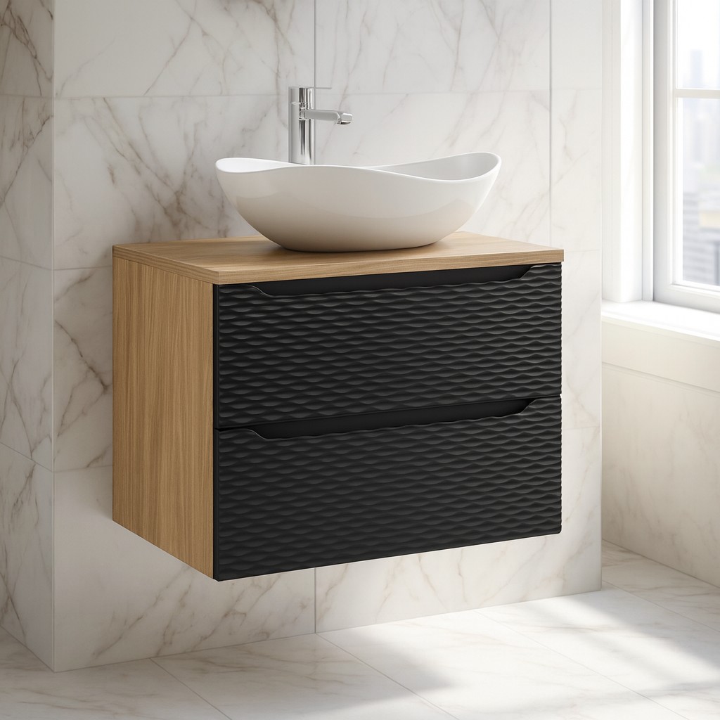 Apportez une touche contemporaine à votre salle de bain avec cet ensemble YOKA 70 cm noir, composé d’un meuble sous vasque à tiroirs, d’un plan pour vasque 70 cm et d’une vasque à poser en céramique. Son association du noir mat et du chêne clair crée un style tendance, chaleureux et élégant.