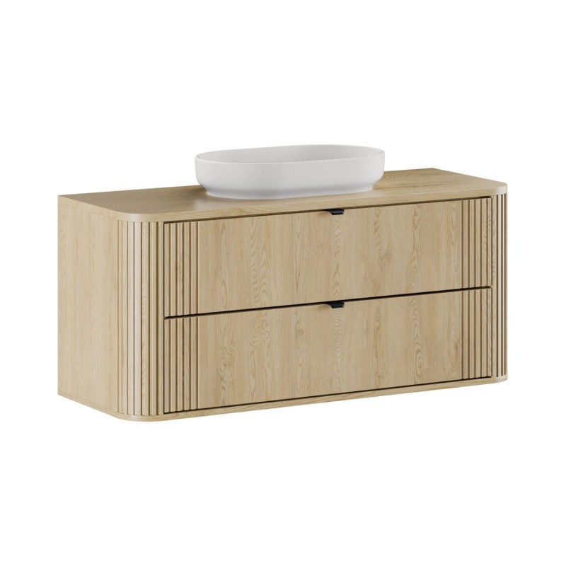 Le meuble sous vasque propose un large espace de rangement pratique, complété par un plan pour vasque 120 cm et une élégante vasque à poser au style moderne. Un ensemble idéal pour un aménagement épuré et fonctionnel.