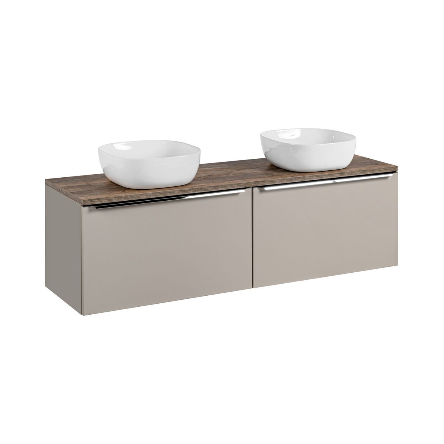 Offrez à votre salle de bain un style contemporain avec cet ensemble VANTA 160 cm taupe. Il comprend deux meubles sous vasque de 80 cm, un plan pour vasque 160 cm et deux vasques blanches à poser en céramique, parfait pour un usage quotidien à deux.