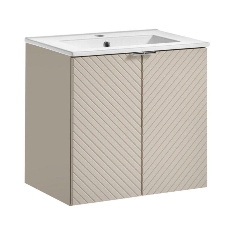 Son coloris beige cachemire mat associé au blanc lumineux de la vasque offre un rendu apaisant et contemporain. Conçu en MDF et panneaux de particules de première qualité, cet ensemble assure durabilité, stabilité et résistance à l’humidité.