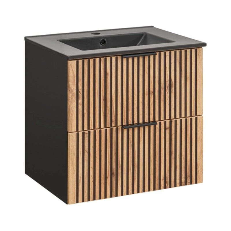Élevez le style de votre salle de bain avec cet ensemble KINOKO 60 cm, combinant un meuble suspendu à tiroirs, une vasque noire encastrée au design audacieux et son siphon inclus. Son association élégante entre chêne clair et gris anthracite crée un contraste moderne et raffiné, idéal pour une salle de bain contemporaine.
